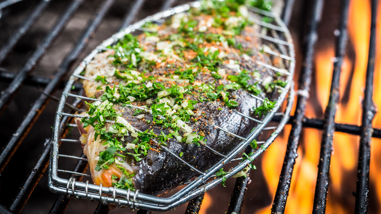 Though most campfire cooking can be done with little to no equipment, it may be wise to invest in a grill cage for roasting fish over a campfire as the wire mesh helps keep everything in one piece. Otherwise, just keep the skin on the fish and enjoy the simple but delicious dish of campfire-roasted fish.