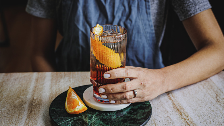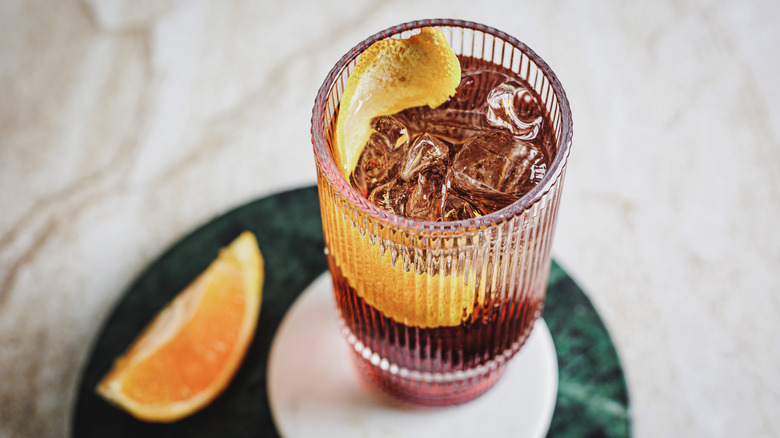 According to food blogger and recipe developer Ksenia Prints of At the Immigrant's Table, this drink has the unique distinction of being both incredibly simple to make and tasting complex on the tongue. Traditionally, the Americano features a 1-to-1 ratio of Campari and sweet vermouth, topped with soda water and an orange slice. Prints takes it to another level of flavor by adding a few drops of orange bitters, enhancing the aromatic profile of each sip. Make yourself an Americano before dinner, and feel like the world's coolest spy with each bitter sip.