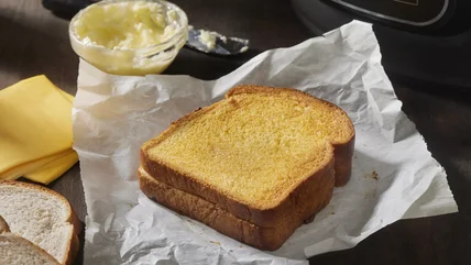 American butter offers a more utilitarian, neutral flavor — which gets the job done, but isn't going to impart any sort of spectacular impact in the flavor department. Still, shelling out for European butter is not the answer for extra flavor. If you're really itching to amp up your grilled cheese, try using salted butter, or even whip up a homemade compound butter infused with herbs and spices to spread on your sandwich post-grill.