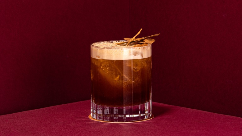 To make a simple, straightforward iced coffee Old Fashioned, combine cold brew, rye whiskey, and a dash of orange bitters. We recommend serving this one over a single large ice cube. It's the ideal type of ice for any whiskey-based cocktail or enjoying whiskey plain on the rocks (or, rather, "rock" singular). It's a fresh take on a familiar classic, but it's also the foundation of other, more inventive coffee-infused Old Fashioned creations ... if you dare.