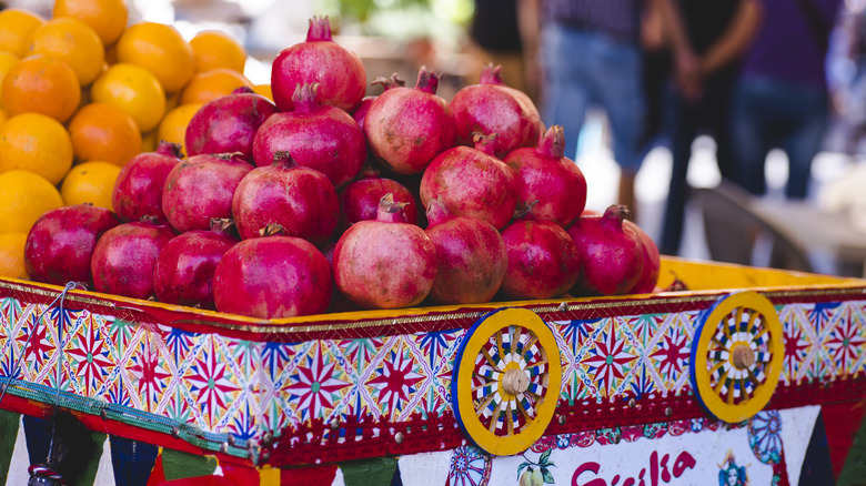 Peeling a pomegranate is worth the effort. It's considered a superfood full of vitamin C, potassium, phosphorus, iron, magnesium, and zinc. It also contains substances that counteract free radicals. Italians eat the seeds in yogurt and smoothies, add them to salads, top them over ice cream, and use them in dessert recipes.