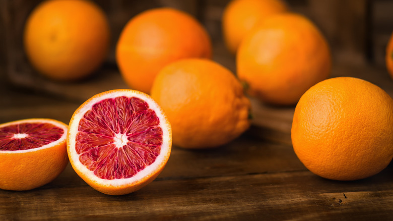 Sicilian blood oranges, known as arancia rossa di Sicilia, look like regular oranges until they are opened to reveal dark red-orange flesh. These oranges grow in the fertile soil near the Mount Etna volcano in Sicily, a warm location that is subjected to temperature changes caused by the cold winds blowing over the mountain. When the oranges experience these changes in temperature, they become stressed and produce substances called anthocyanins as a defense mechanism, which are responsible for the dark red color of the flesh.