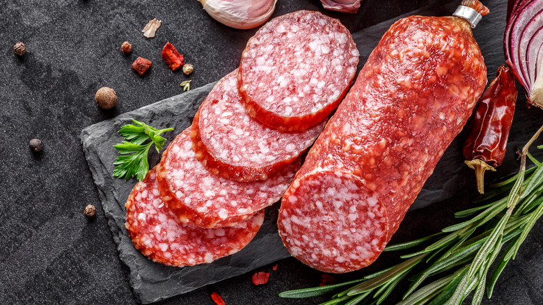During the curing process, meat is kept between 50 and 60 degrees Fahrenheit to prevent bacteria growth. Anything above 60 degrees is a breeding ground for lactic acid bacteria. While not particularly harmful to consume, these bacteria produce acids that ruin the flavor of your beloved speck or coppa. For that reason, it's essential to store cured meats in the refrigerator. Wrap them tightly in plastic wrap before storing and do your best to keep them away from light. Thinly sliced cured meats (like prosciutto) last about three days in the refrigerator, while harder varieties can last up to two weeks.