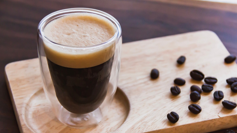 The profile of a traditional Italian shakerato is much more bold and bitter in comparison. This elegant concoction is made by combining freshly brewed espresso with a touch of sugar or sweetener, which is then vigorously shaken with ice in a cocktail shaker. Although the drink is shaken with ice, it isn't poured over a cup of ice — it's strained like an actual cocktail. You'll be left with a heavily concentrated but lightly sweetened espresso and a layer of foam from the aeration. Ice served in coffee isn't common practice in Italy, so the shakerato is more of a chilled espresso rather than an iced drink. If you want your Starbucks shaken espresso to taste more like Italian shakerato, try this ingredient swap for a stronger shaken espresso.