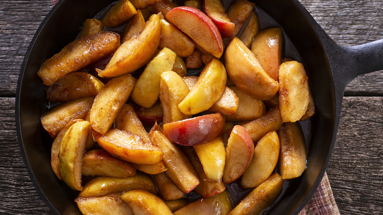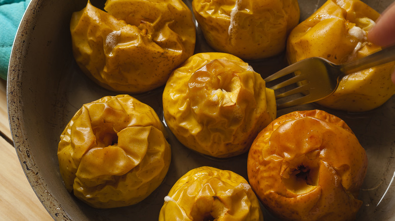 If you've ever looked for an easy, flavorful, and aromatic dessert, side dish, or snack, consider roasted apples. And, depending on the recipe that you use, it's a surprisingly healthy one too. While many apple dishes call for additional sugar, oats, and other filling ingredients, a straightforward roasted apple relies on nothing more than its own natural sugars, a little bit of cinnamon, and some butter to maximize flavor.