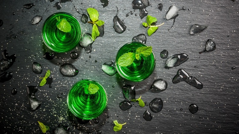 Crème de menthe is a popular one, especially if you're adding a little dairy to your cold coffee cocktail. While this liqueur isn't made with dairy, it's commonly mixed with milk, heavy cream, or ice cream because they just work so well together. You can also go with peppermint schnapps, which have more alcohol and less sugar. Schnapps is also quite a bit mintier, whereas crème de menthe tends to have a softer, less intense taste. You may have to adjust the other ingredients in your beverage depending on which minty liqueur you go with, especially any sweetener, as you may find crème de menthe adds enough sweetness on its own.