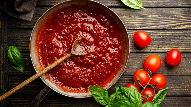 Beautiful, red marinara or pomodoro sauce, whether homemade or bought in a jar from a store, is a much-anticipated component of a pasta dish or homemade pizza. The combination of tomatoes, garlic, olive oil, and herbs like oregano and basil used to create the base of these sauces produce a tasty bite. But if you are looking for a nontraditional ingredient to change up the classic flavor of your pasta sauce and add a little tang, then break out the sour cream because it's a game-changer.