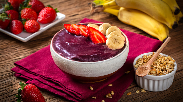 Açai has been a tropical fruit favorite for years now, and it's no secret as to why. This small, Central and South American berry has a gorgeous purple hue and strikes the perfect balance between mild and tart. In addition, the fruit has been lauded as a superfood full of vitamins and antioxidants. So, if everyone wants to get their hands on açai, why is it impossible to find fresh in grocery stores?