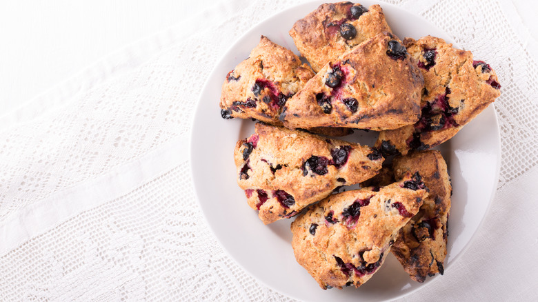 Scones are undoubtedly one of the most underrated breakfast, brunch, lunch — and really anytime — treats. Although they are well-loved in many countries, scones may have a different identity depending on what part of the world you order one. While American scones are typically loaded with sugar, a distinct glaze, and specks of chocolate or fruit, the British version is more subdued with a drier, and certainly less sweet, flavor — almost like a traditional Southern biscuit. It also has a much deeper history. The pastry was at the height of fashion in the 1840s when it became associated with the afternoon tea ritual and has remained a paramount part of British culture since.