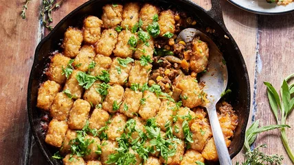 In this recipe by longtime Midwesterner Michelle McGlinn, a shepherd's pie base is topped with crispy tater tots for a very cozy fusion meal. It's everything you love about both dishes in one casserole, and it's perfect any day of the week.