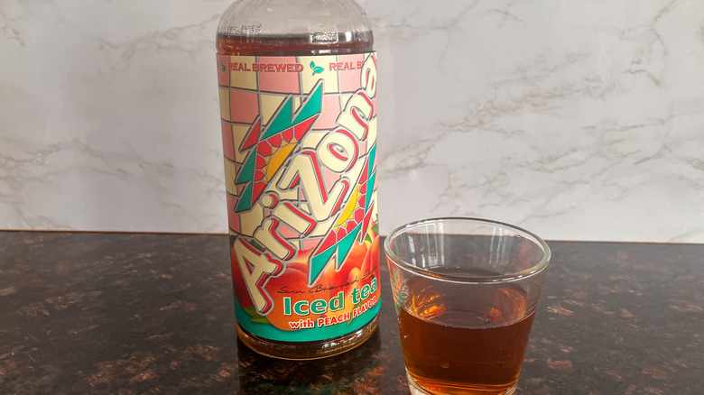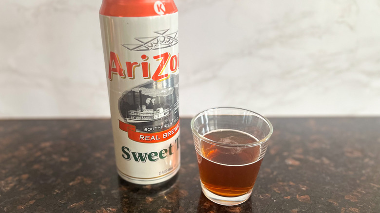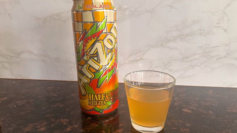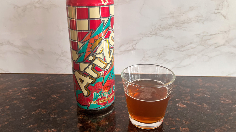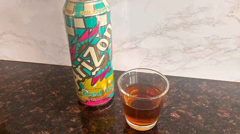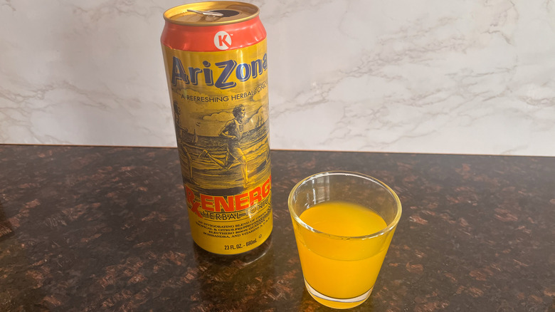 If you frequent 7-Eleven convenience stores or adamantly stop for snacks during a road trip, then there's a good chance you've seen a can (or several) of AriZona tea sitting pretty on a refrigerator shelf. AriZona teas are known for two distinct reasons. One, they come in massive servings — a whole 23-ounce tallboy, to be exact, and if that's not enough to quench your thirst, then we really don't know what is. The second reason for AriZona's popularity is the fact that its cans only cost 99 cents, considerably a steal given how much liquid you get in one go.