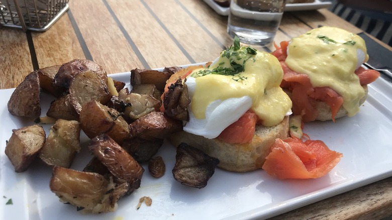 Lox bagels piled high with salmon, cream cheese, capers, tomatoes, and red onions are an excellent use of salmon for breakfast. One can also cook salmon-centric savory oats or eggs Benedict with smoked salmon for classic salmon breakfast and brunch staples. For lunch, salmon is equally versatile and has a place in burgers, sandwiches, salads, and more. Frankly, there is no rule that dictates when and how salmon may be consumed. And, probably more out of habit than anything else, many dismiss salmon's breakfast, lunch, and brunch qualities whilst completely ignoring how amazing it is to sit down to a salmon breakfast. Just give it a try — you won't regret it.