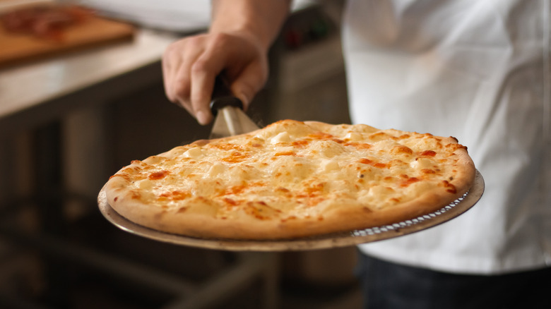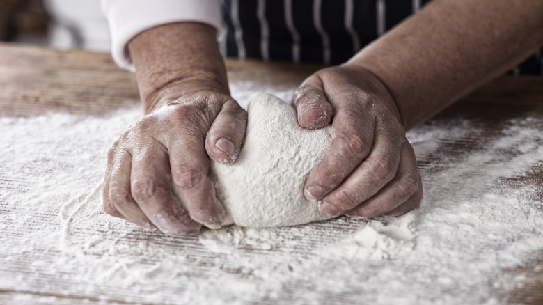 Another mistake to steer clear of when forming pizza dough is the use of a rolling pin. While it's tempting to use a rolling pin, this can make the pizza dough too thin and can have other textural consequences. A rolling pin pushes out the gas bubbles that contribute to the pizza's light and airy texture, resulting in a denser, tougher crust. Instead, stretch the dough by hand, a process that takes some practice but results in better control over the thickness of the crust while preserving the best texture.