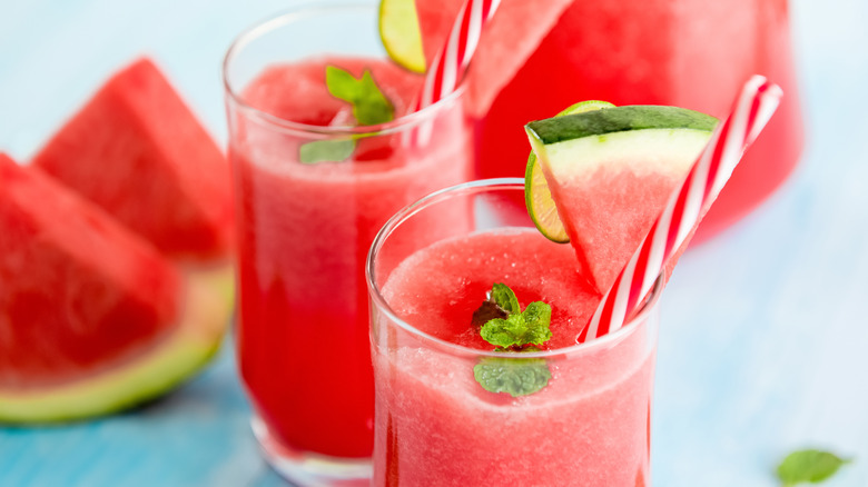 Lemonade is the perfect blank canvas for other fruits and flavors. Watermelon lemonade is one of our favorite recipes because the addition of a melon adds both a mild undercurrent of flavor and the hydrating benefits of summer's favorite fruit. To make this drink at home, add lemon juice, simple syrup, and cubed watermelon to a high-speed blender. Keep blending until the purée comes out smooth and transfers over ice.