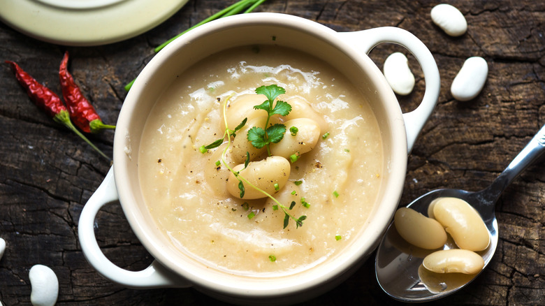 It's remarkable just how easy it is to use cannellini beans to thicken a soup. Simply pour some of the beans into a bowl and mash them up — it's that easy. You don't even need to drain the beans. The mashed beans with their liquid form a thick paste that works as a great milk substitute. Try adding it to some of your favorite soups that need an extra boost of flavor or creaminess — from the ever-popular cream of tomato to the summer classic corn chowder. For seafood lovers, these beans could work wonders in a lobster bisque.