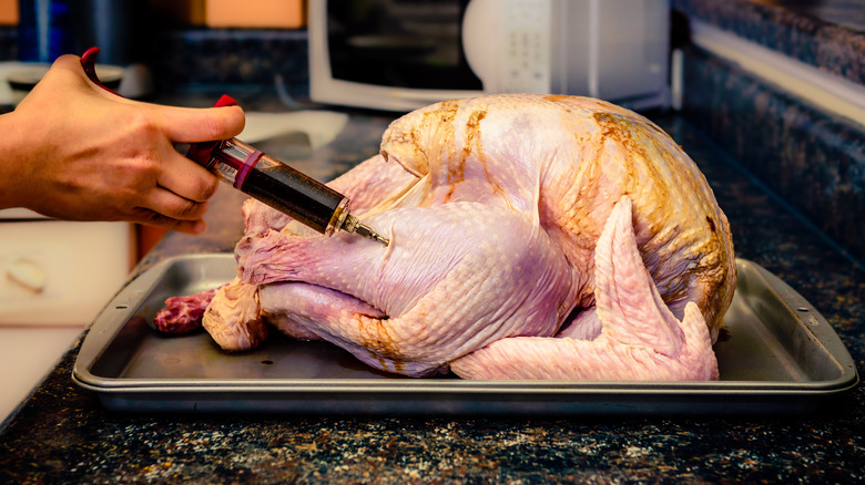 Unlike using a brine, which needs time for the brine to flavor and tenderize, injecting gives you an almost instantaneous payoff. Injections also have an advantage over basting and spritzing because they're done ahead of time and don't require you to open the lid of the smoker or grill during the cooking process. Per Cookston, "If you're opening that door you're losing all your heat, which you have to gain back ... You get big temperature fluctuations that way which, when you're rendering fats and collagens, is bad for the cooking process."