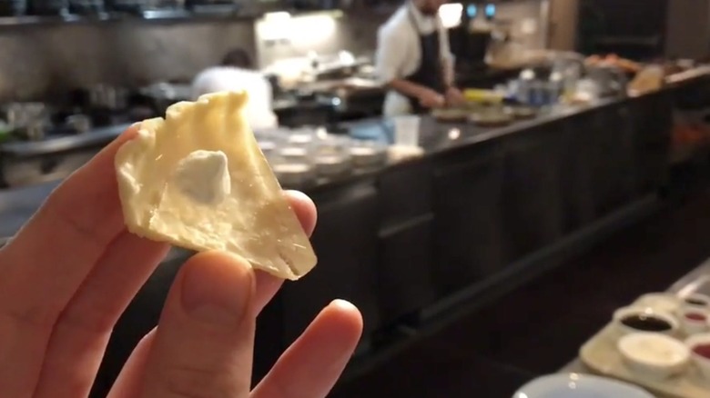 "It is a distillation of pumpkin, cinnamon, ginger, and clove. Texture is very important to us," Davies replied on Instagram to a skeptical user, via Teen Vogue. After posts of the pie gained traction on the internet, Davies was contacted by several outlets to describe the unique treat in detail. To Slate Magazine, Davies explained that the crust and the whipped cream remained true to more traditional pumpkin pie recipes: Heavy whipped cream with sugar and vanilla topped each treat, and the crust was made in pâte brisée style, a commonly known shortbread recipe that can complement both sweet and savory fillings. As for the filling, well, that's where Achatz, Davies, and team stretched their creative limits, ultimately inspiring a flurry of other chefs to take on the project for themselves.