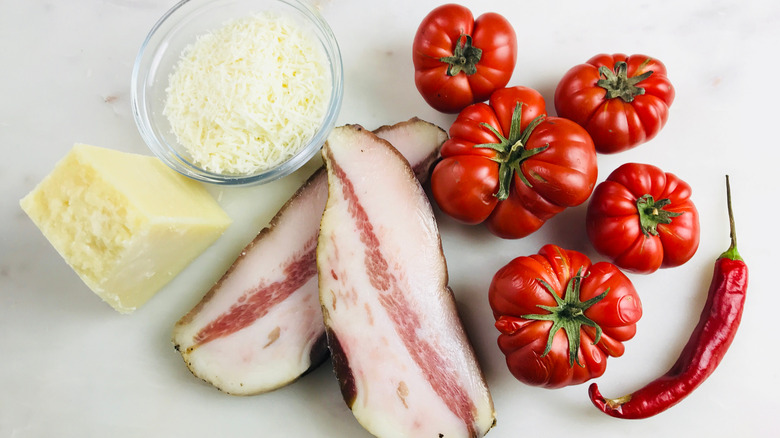 In honoring the original amatriciana recipe, it's best not to make substitutions as this will no doubt affect the final flavor of the dish. That said, fatty, guanciale imparts an intense umami flavor, which is why mild and sweet pancetta or smoky bacon should be avoided. Similarly, when it comes to cheese, Pecorino Romano or Pecorino di Amatrice are the only varieties that should make their way into the recipe. Unlike Parmigiano, Pecorino provides a salty and sharp quality that makes amatriciana all the more cohesive.