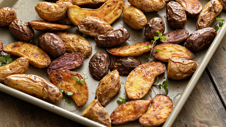 Roasted potatoes are among the most beloved of all side dishes. At their very best, they are crispy on the outside and fluffy on the inside. The most difficult part of the whole process, however, is deciding what kind of potatoes to use. Fingerling potatoes are a fantastic option — not only are they endlessly adaptable, but the crispiness you can achieve is second to none. Of course, that's provided you toss them properly.