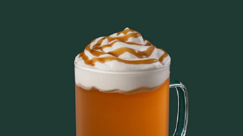 The comforting blend of steamed apple juice is stirred with sugary cinnamon dolce syrup, crowned with a generous dollop of whipped cream, and a lavish drizzle of caramel on top. Though its rich, inviting taste is reminiscent of fall's comforting ambiance, the Caramel Apple Spice doesn't limit itself to just one season. If you're in need of a hot beverage that isn't coffee or tea during a chilly summer night or a crisp winter morning, here's your drink.