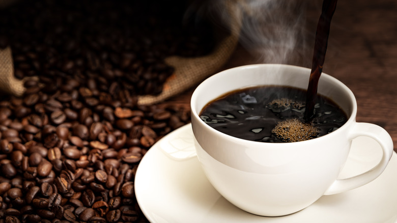 If you've got a nice big mug or portable flask for your coffee, your first instinct may be to press on the highest-ounce setting on your machine. And while that will likely fill your cup, what you're getting is a more watered-down coffee. After all, each K-Cup pod holds the same amount of coffee grounds, so your brew only gets weaker the more water your Keurig dispenses. In order to achieve a more robust flavor and stronger serving of coffee with quite literally the press of a button, opt instead for the smallest-sized setting to use less water and get a more concentrated result. Of course, this might mean that your larger container won't be filled up but don't worry — this trick is two-fold.