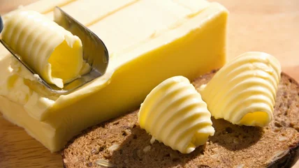 Colloquially, you might hear folks refer to sweet cream butter as "American butter" and cultured butter as "European-style butter," as the latter is becoming more commonly available in the U.S. American or sweet cream butter has less butterfat, around 80%, while European or cultured butter is required to have at least 82%. Cultured butter is also churned longer, which helps give it a higher fat percentage, and it has a more yellow hue than sweet cream varieties. Due to the differences in fat content, each type of butter should be used for different types of cooking.