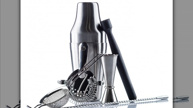 No contraption in mixology is more indispensable than the cocktail shaker. There's a captivating allure to the sight and sound of a bartender putting one into action — a signal that a tasty cocktail is coming together, and is about to flow into the glass. And while the maneuver is straightforward in nature, the utilized shaker makes a difference in your drink. There are three types to choose from: the Boston, the Cobbler, and the French, also known as a Parisian. While a selection won't necessarily limit your cocktail possibilities, they do all come with a unique set of pros and cons.