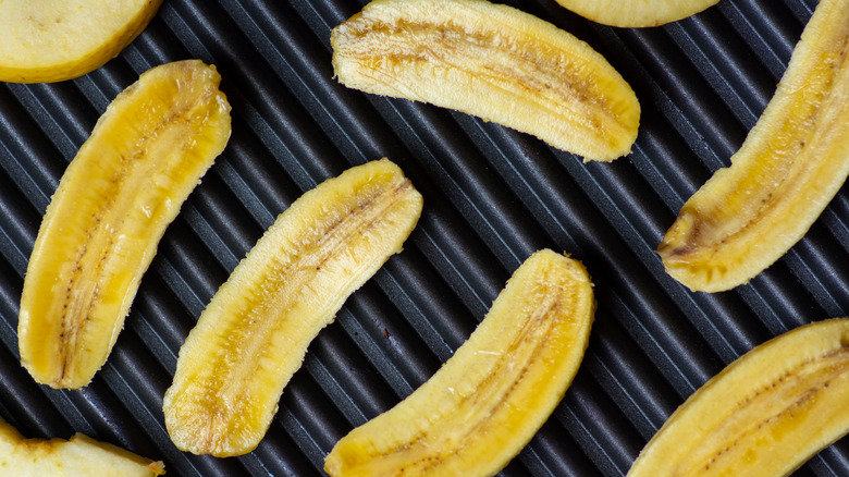 If you haven't already experimented with cooking bananas on the grill, you're in for a real treat. Be sure to choose firm bananas so the texture of the fruit will hold up when placed over heat to set yourself up for putting together an unforgettable banana pudding recipe. Keep the bananas in their peel, slice the fruit lengthwise, and brush the exposed area with butter. As natural sugars begin to caramelize, the fruit will soften. Once the bananas have cooked, let them cool on a plate before assembling your final dessert.