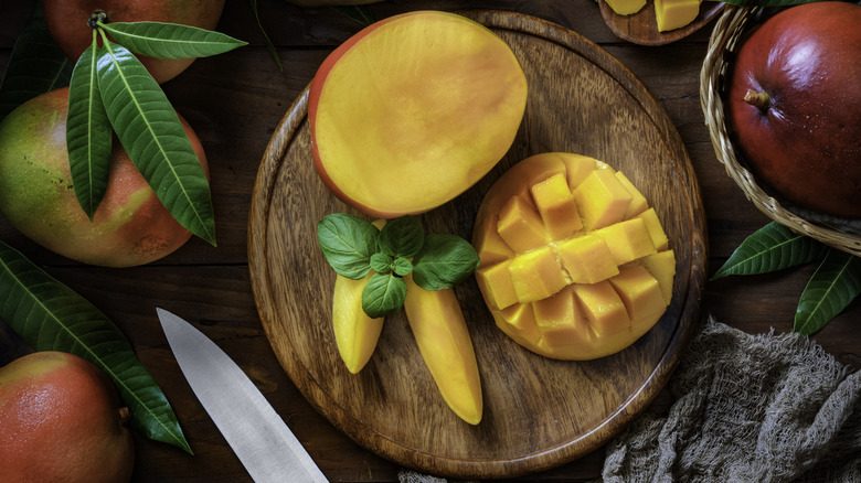 The first step to make this drink is to throw your mango chunks into a blender. Using frozen mango is best to achieve the desired consistency, and you can either prepare them yourself or buy them in a pre-frozen bag from the grocery store. Add in some water to help your blender do its job along with sugar, lime juice, and any other juices you prefer. Blend the ingredients, and once everything is mostly combined, you can add in your alcohol of choice. Of course, you can skip this step if you're opting for a mocktail variation. Once the drink has taken on a completely smooth, slushy-like texture, it is ready to be poured out into glasses.