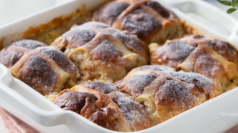Got neutral or sweet biscuit leftovers? Rejoice at the opportunity knocking at your oven door. You can salvage (or dare we say, upgrade?) leftover biscuits by baking them into a sweet bread pudding. Biscuits, per Erika Council, are especially exceptional bread pudding materials because they "really absorb the egg and give you a super custardy-buttery base." As you would with stale bread, throw your old biscuits into a mixture of eggs, milk, and bread pudding spices (like vanilla, cinnamon, and nutmeg) and set your kitchen timer for a rich, custardy dessert.