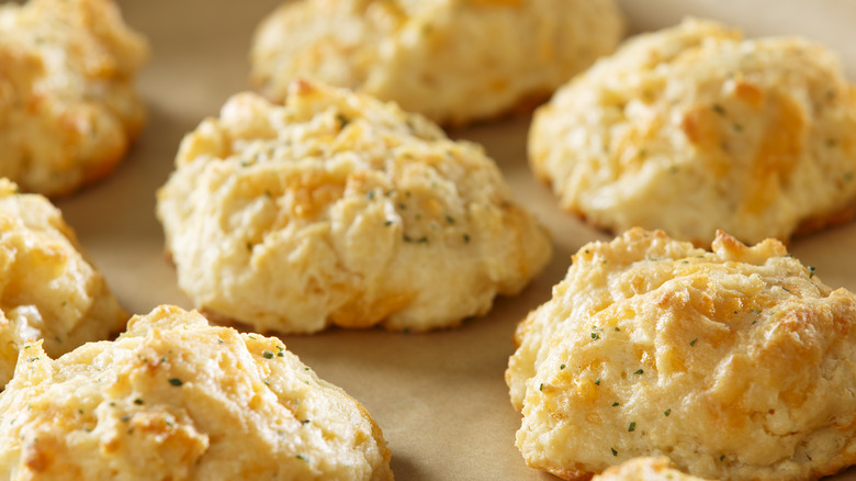 Think of your dry ingredients mix as a drawing board for texture, flavor, and color. Cheese is far from the only additive you can mix into your dry biscuit ingredients before incorporating the wet. Meaty and spicey additions also make for creative biscuit upgrades and are consistently best sellers at Bomb Biscuits, Erika Council affirmed. "I'd say the most popular two biscuits outside of the plain buttermilk biscuit at the restaurant are the cheddar jalapeño and a black pepper bacon," the biscuit legend told us.