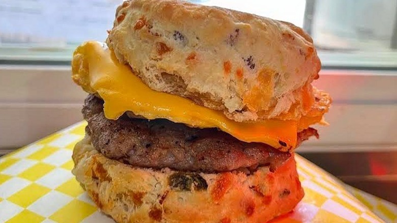 Good friends, we've entered the territory of biscuit sandwiches and will not depart until we explore the wonders of everything bagel toppings. Buy a pre-mix if you're short on time, or home-make an everything bagel seasoning with sesame seed, poppy seeds, onion, garlic, and — for spice aficionados, only — a bit of cayenne pepper. If you've been following along so far, you've likely guessed the next step, correctly. Brush your biscuits with buttermilk, before sprinkling the seasoning on top of them, and sticking them in the oven. Et voilá! You've not only seasoned the top of your biscuits but also their doughy insides. Per Erika Council, during the baking process, the "garlic and onion flavor kind of seeps into the biscuit as it cooks."