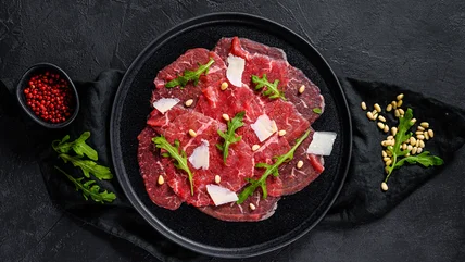 In the Italian dish, the beef's sliced ultra-thin and layered with parmesan cheese, olive oil, lemon juice, and a bit of arugula. The combination of acidic and savory notes elevates the meat's flavor to a new level. But, of course, it all needs to start with a delectable beef cut.