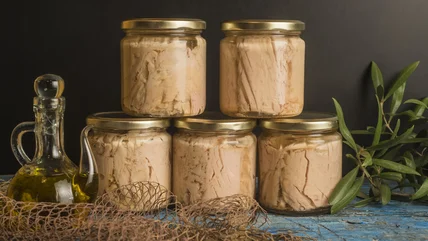 Thankfully, canning tuna at home — raw or precooked — isn't too hard. First, wash the tuna and bake or cook in a steamer, then rest the fish in the refrigerator overnight. Next day, skin and debone before cutting into small pieces and packing into pint jars. Add salt to taste and water or olive oil, leaving 1 inch of headspace. Then wipe the rims, screw on the lids, and process in a pressure canner for 100 minutes. It's even easier if you opt for raw packs since you don't precook the fish, and you don't have to add any liquids to the jars before processing.