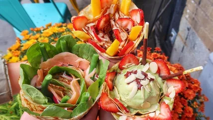 Imagine strolling through bustling New York City while relishing every bite of a crispy, delicate, gluten-free crepe — rolled up and brimming with cream, fruits, and a drizzle of chocolate. This is not your traditional, French, served-on-a-plate crepe, but a Japanese version, which is a portable and modern twist on the beloved delicacy. While the Japanese iteration retains the essence of its French counterpart, it introduces several novel elements.
