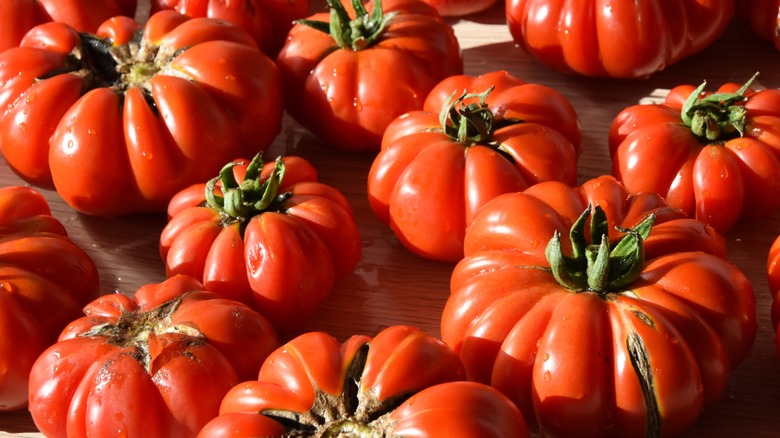 Along with these varietal recommendations, the chef has a few pointers on how to best use these treasured heirloom tomatoes. First and foremost, Barker advises you to keep things simple. "When using heirloom tomatoes in dishes, minimal manipulation is always best to let their flavors shine," the farmer says. So look to enjoy them in tomato sandwiches or salads, plainly dressed with a bit of salt and good-quality olive oil. If you want to make a classic sauce, try to make an unadorned tomato sauce with just a touch of herbs. In other words, treat it like the fresh seasonal produce it is without covering up its natural sweet and savory taste.