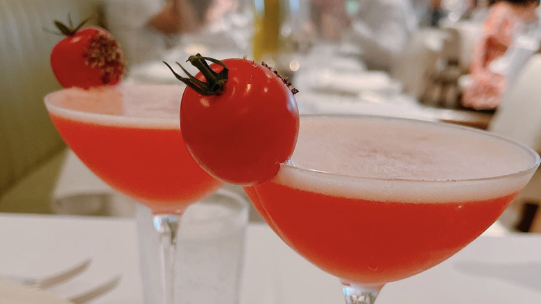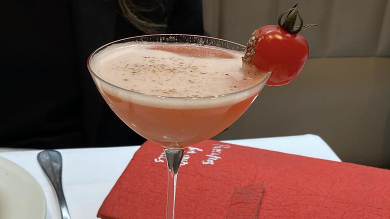 This surprising drink recipe first burst onto the bartending scene in 2010 via the restaurant group LPM, and its team sought to bring classic Mediterranean ingredients straight into a glass. And one could make the case they succeeded; with lemons, tomatoes, vinegar, and Ketel One, this unique martini mix offers a tangy punch that can complement a range of appetizers and main dishes. After your first order, you may be pushing other martini varieties to the side and asking for Tomatinis to go with your next meal, whether you're ordering a Mediterranean-inspired entrée or not.