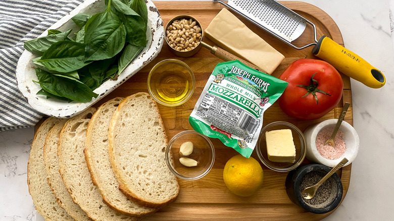 Gather the ingredients for grilled pesto mozzarella sandwich recipe