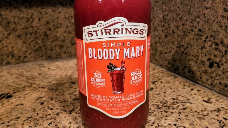 Stirrings Simple Bloody Mary mix takes its inspiration from a tomato sauce recipe. It includes pure cane sugar, often used in sauce to help cut the tomato's acidity. The resulting mix has a hint of sweetness and mellow horseradish spice. While the flavor is good, Stirrings is rather austere compared to others. It needs doctoring with the ingredients that take a Bloody Mary from good to great.