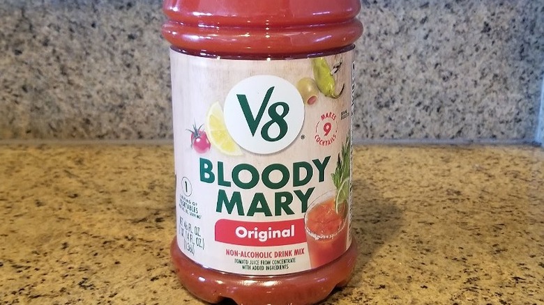 Aiming to get a nutritious veggie boost to your diet by utilizing V8's Bloody Mary mix with your vodka? Don't get your hopes up. Unlike traditional V8 juice, which delivers two servings of vegetables in every eight-ounce serving, the Bloody Mary mix base is not the same veggie-packed juice. Instead, the main ingredient is tomato juice, with lemon juice from concentrate, sugar, salt, and spices.