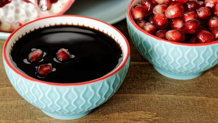 Essentially, pomegranate molasses is pomegranate juice that's been cooked down into a tart and sticky syrup. This ingredient can be found in dishes across the Middle East like an Iranian fesenjoon — a sweet and savory chicken stew — or a Turkish lamb kofta — a spiced ground meat often formed into meatballs or kebabs.