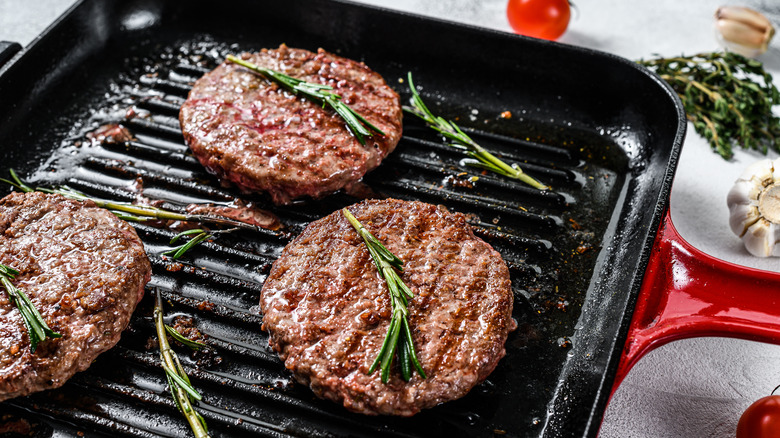 Cooking burgers on the grill is a go-to move for many chefs, but David Chang thinks, as a culinary endeavor, it's a bit of a sham. "A backyard burger is an experience that you try to convince yourself that it's better than it actually is," Chang shared on his podcast, The Dave Chang Show. Instead of dealing with the hassle of briquettes and the smoke that follows you everywhere, Chang insists burgers are better cooked on a frying pan inside your kitchen.