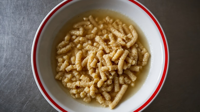 Since passatelli has an ingredient list that's atypical for traditional flour-based pastas, it should come as no surprise that its consistency is more akin to pillowy dumplings than chewy noodles. Likewise, this also means that passatelli boasts infinitely more flavor than other pasta varieties, meaning it is served thoughtfully as opposed to in heaps.