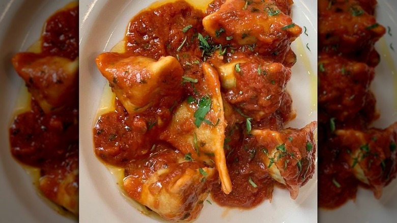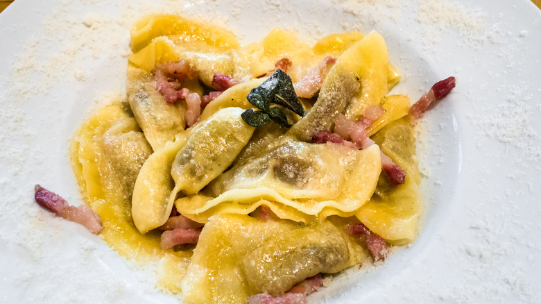The dough of this pasta is unlike other types of pasta dough because it historically omits eggs. Instead, the pasta is made with just flour and water, or occasionally potatoes — similar to a gnocchi dough. While the fillings vary based on geography, there is often some mixture of sweet and savory ingredients, including raisins, chocolate, chives, herbs, and pine nuts. Unsurprisingly, this pasta dish earned the title of svuota-dispensa — a pantry emptier — via Fruilian homemakers. The most common sauce for the pasta is melted butter and smoked ricotta, which complements the wide variety of fillings possible.