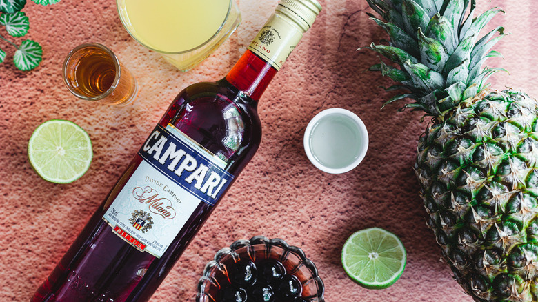 - Combine rum, Campari, pineapple juice, lime juice, and simple syrup in a cocktail shaker.
