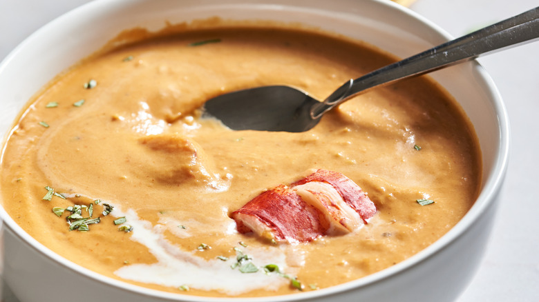 There's nothing quite like a spoonful of velvety soup ... except if it's made with the king of crustaceans: lobster. Tasting Table recipe developer Michelle McGlinn brings us this rich and creamy lobster bisque recipe, and you'll want to pay attention. Made with stock from lobster tails and loaded with tender chunks of meat, this bisque is worthy of a fine dining experience. McGlinn shares, "It feels luxurious to eat because of the silky, buttery texture and flavor so natural to lobster!" Meanwhile, if you're lucky to live in a coastal region, it may just be a casual weeknight dinner during lobster season.