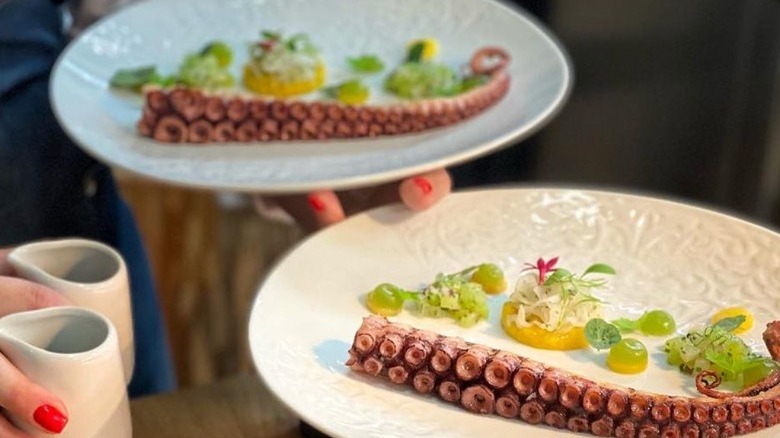 The octopus is one of the most popular dishes, as is the Hungarian water buffalo steak tartare. If you skip the octopus appetizer, be sure to order the octopus rice. The only dining option available at dinner is the five-course tasting menu; elevate your meal with a wine or zero-proof beverage pairing.