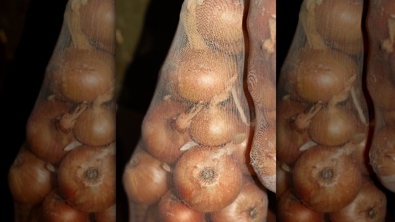 Onions can last a whopping three months in the fridge if stored properly. And while it's tempting to just throw them in a plastic bag or box, there's an unexpected, yet common, household item that is ideal for keeping your veggies in prime condition. It turns out that pantyhose aren't just good for keeping your legs covered — they also make excellent onion wrappers.