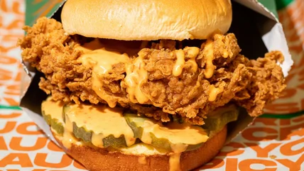 If you can't make it to New York or prefer a little sweet with your heat, Fuku has also announced an extended summer run of its limited-time Sashay Filet Biscuit until September 3. The biscuit sandwich features a habanero-brined thigh, pickles, and a Georgia peach sauce, all served on a cheddar biscuit. It was originally created for Pride Month, with all proceeds benefiting the Hetrick-Martin Institute, a youth organization that serves queer and trans youth, with a focus on youth of color.