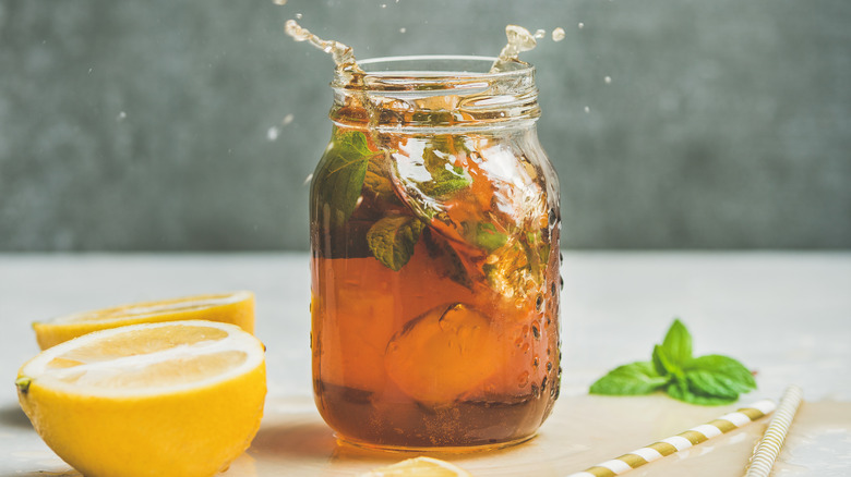 While there's nothing quite like a cold glass of homemade iced tea on a sunny day, you might find that most iced black tea recipes tend to skew toward the sweeter side of things. From southern peach sweet tea all the way to Hong Kong-style iced lemon tea, there's no shortage of sugary drinks you can make out of black teas; but if you'd rather skip the sugar, you might want to try adding fresh herbs to your pitcher instead.